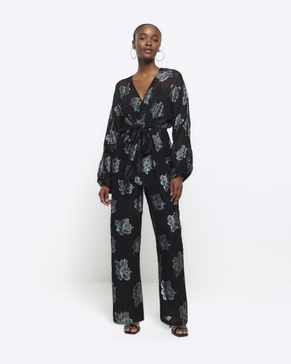 River island hot sale black jumpsuit sale